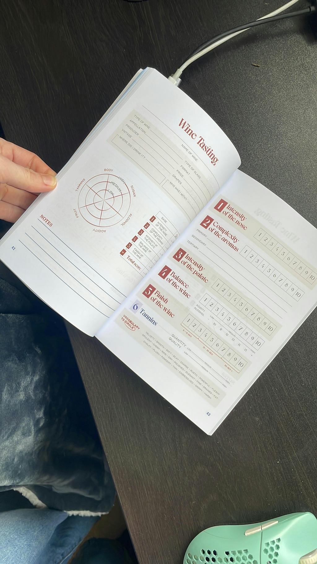 Whether you’re just starting out or refining your palate, the booklet breaks wine tasting down into clear, approachable steps: intensity of the nose, complexity of aromas, intensity of the palate, balance, and finish, with optional tannin assessment for red wines. Each tasting is scored out of 100, helping you build your own informed perspective rather than relying on others’ opinions.